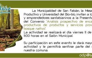 Invitación a empresarios sanfabianinos a Presentación y Firma Convenio «Análisis prospectivo de encadenamientos productivos de productos y servicios provenientes del bosque nativo»